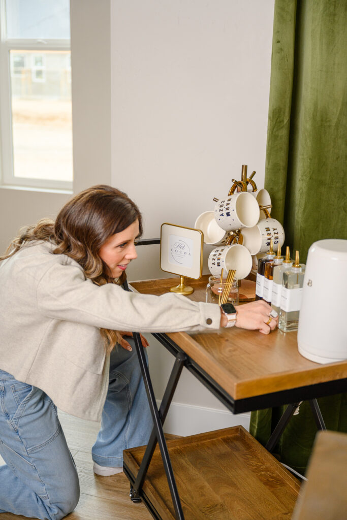 As a Utah brand photographer, I packed up my gear, including my lighting setup, and headed straight to her beautifully organized home. And wow. Every space looked like it was straight out of a home organization Pinterest board. We’re talking labeled containers, clean lines, clutter-free counters, and the kind of aesthetic that makes your inner neat freak sing. From her pantry to her office, every room had its moment to shine. While she worked her magic organizing and styling, I captured it all-her in action, the details of her organized spaces, and of course, some killer headshots that showed off her confidence and professionalism.