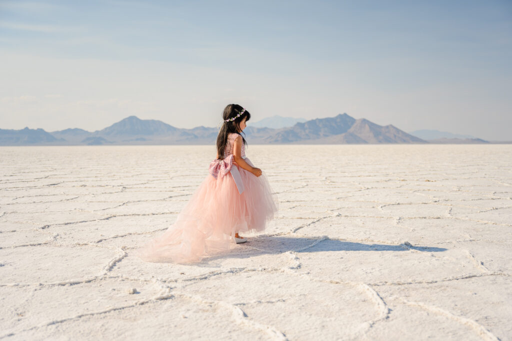 However, once a year I offer limited mini sessions at the Salt Flats. These allow clients to experience this incredible location without paying full travel costs or full session pricing. It’s one of my favorite events of the year because it makes this bucket-list photography location more accessible to families and small businesses.